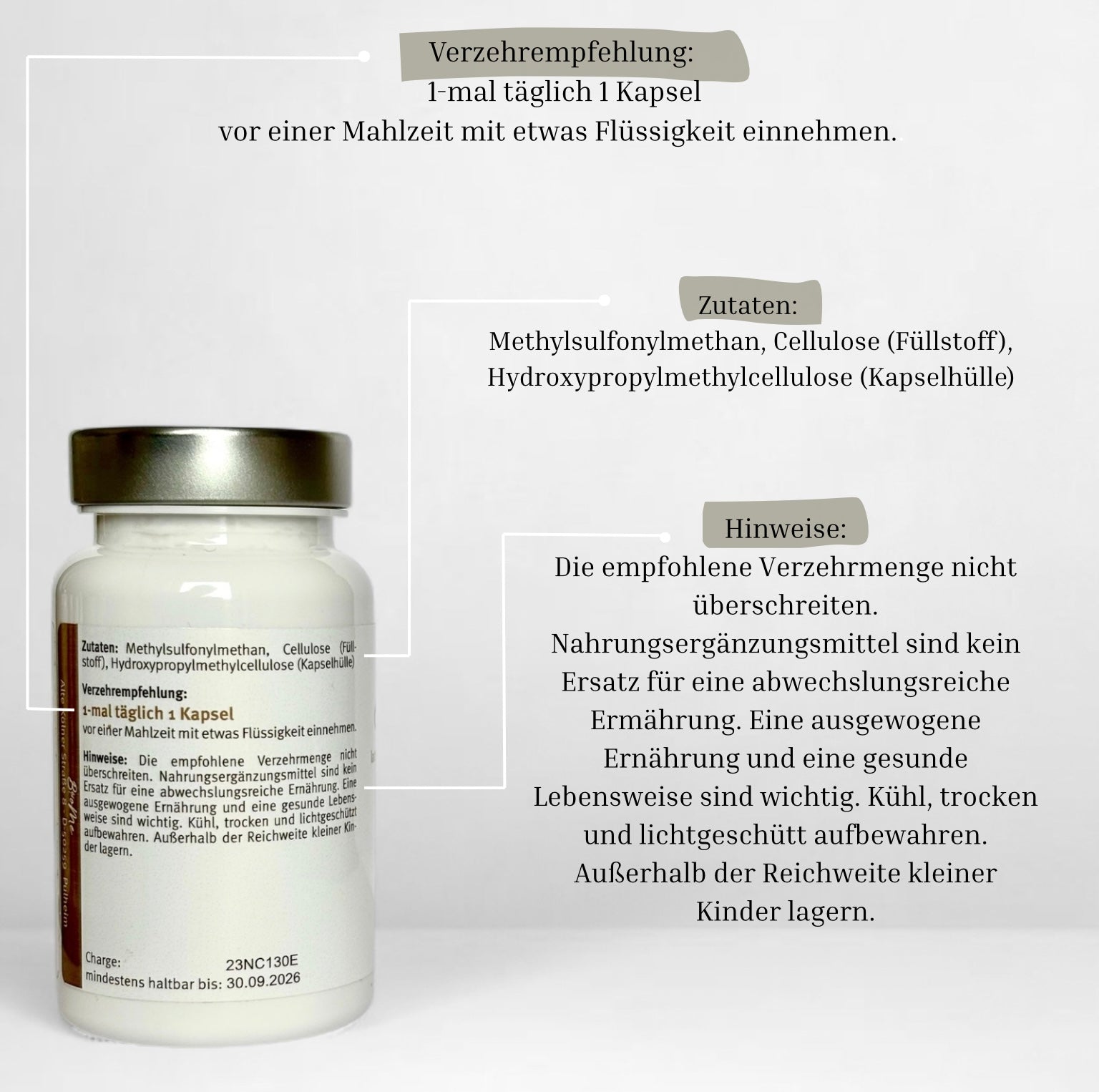 • Hochdosiert: 500 mg MSM pro Kapsel