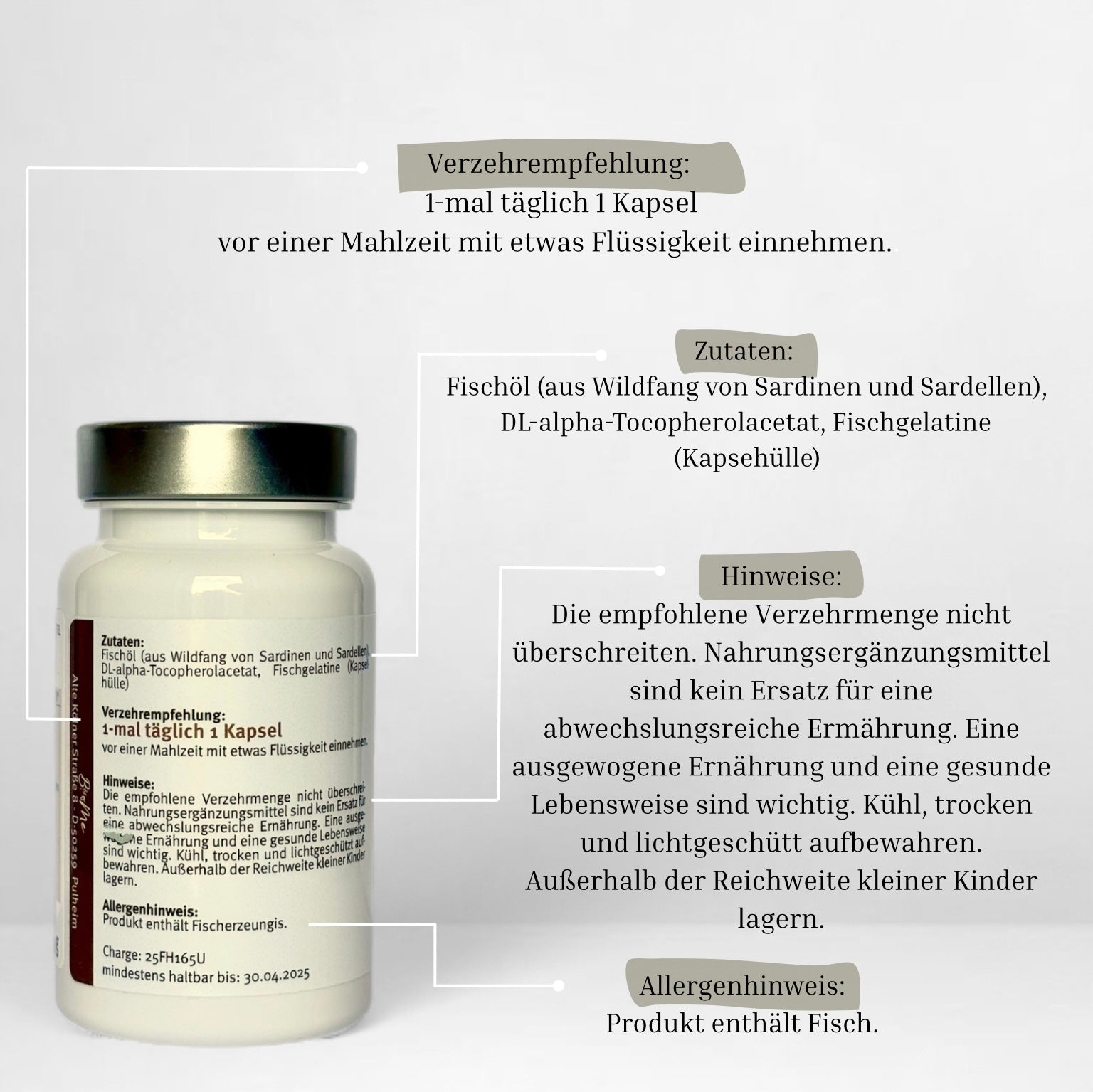 • Hochwertiges Fischöl aus Wildfang (Sardinen und Sardellen)